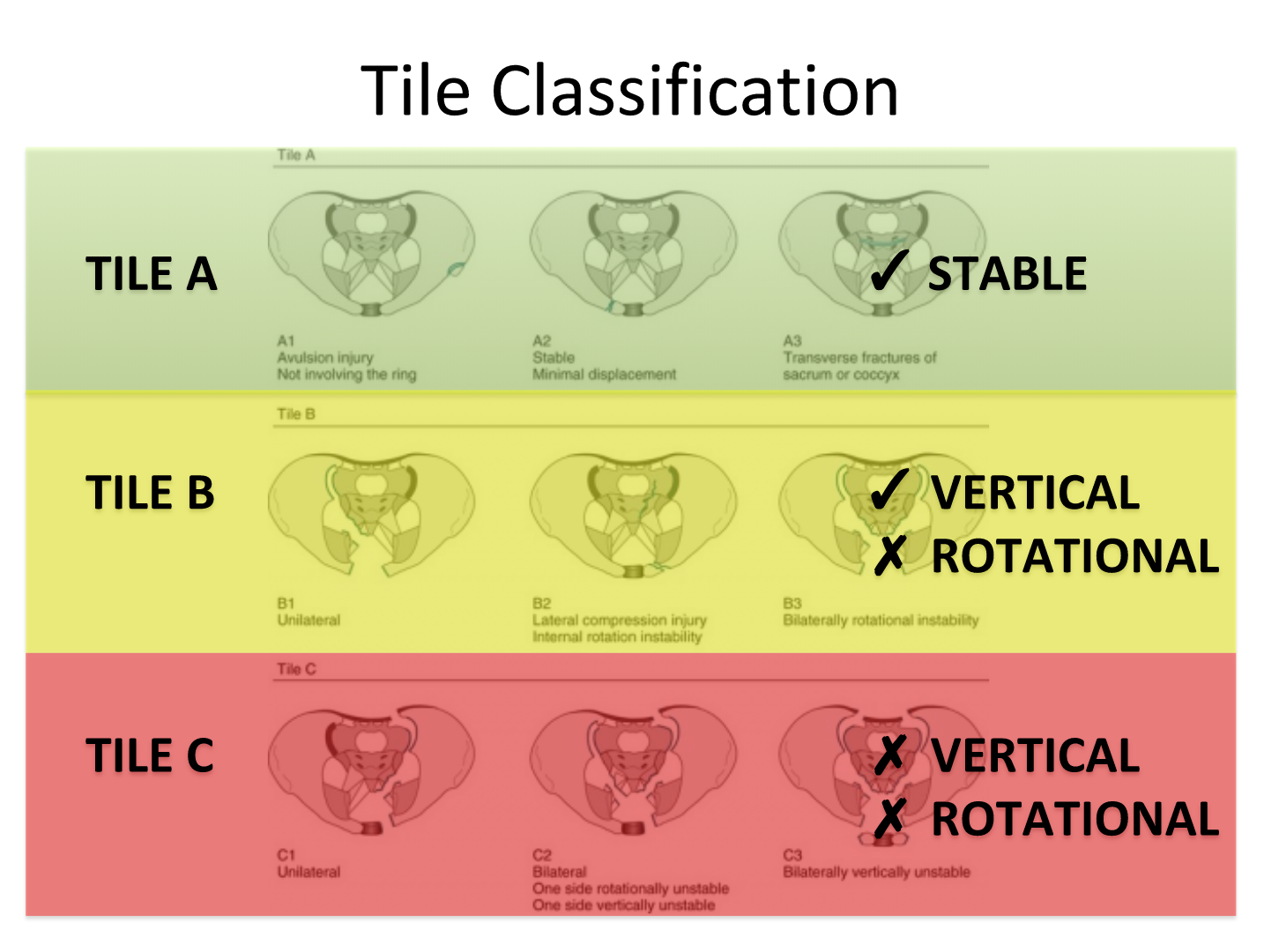 Tile classification of pelvic fractures (type A, B, and C le…